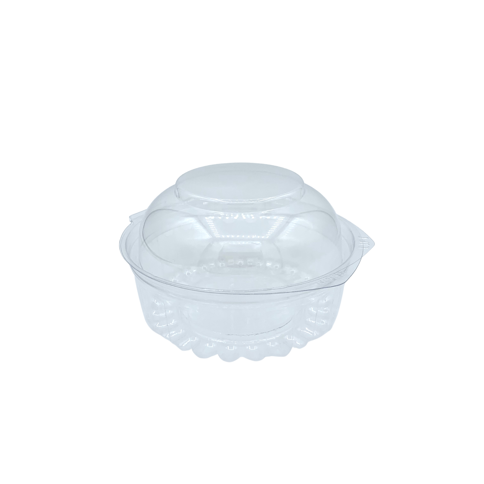 Clear container with attached clip on dome lid. 100% Recyclable.